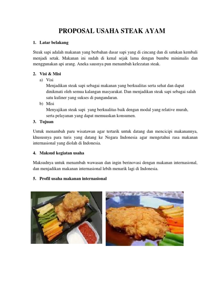 Doc Proposal Permohonan Bantuan Modal Usaha Habib Prakoso Academia Edu from 0.academia-photos.com Sebelum membuat proposal lihat dahulu contoh pembuatan proposal pengajuan dana dan struktur dari sebuah proposal yang benar. Dalam berwirausaha pasti kita perlu membuat proposal agar usaha yang kita jalankan akan bisa sukses diminati banyak pembeli. Kami sepakat untuk membuat suatu usaha bidang makanan yaitu pembuatan kue (gorengan). Kumpulan contoh proposal usaha kecil berupa makanan, minuman, kerajinan, percetakan, konveksi, cafe, restoran, pertanian, catering, jus buah, ternak ayam, ikan, sapi, kambing, laundry contoh proposal usaha makanan. Contoh proposal usaha makanan mengenai aspek umum. National essay competition for the better future. Dari masakan padang, sunda, jawa, dan lainnya. Lomba esai nasional biology competition 2017.